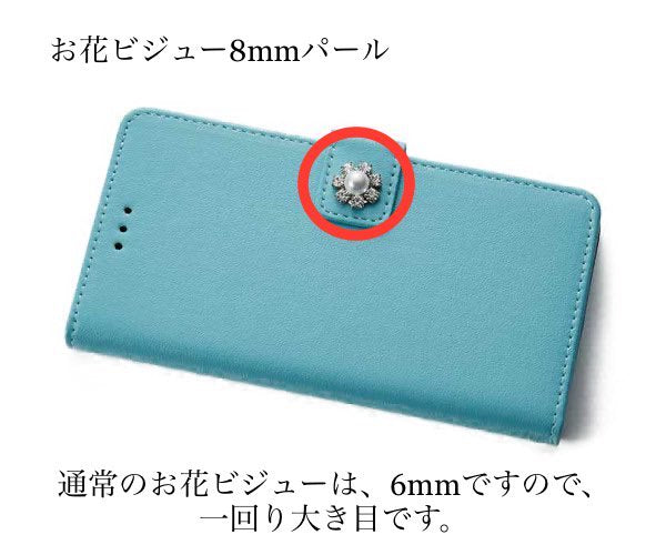 手帳型スマホケースのベルト部分に写真の様なお花パールビジューを追加させて頂きます。