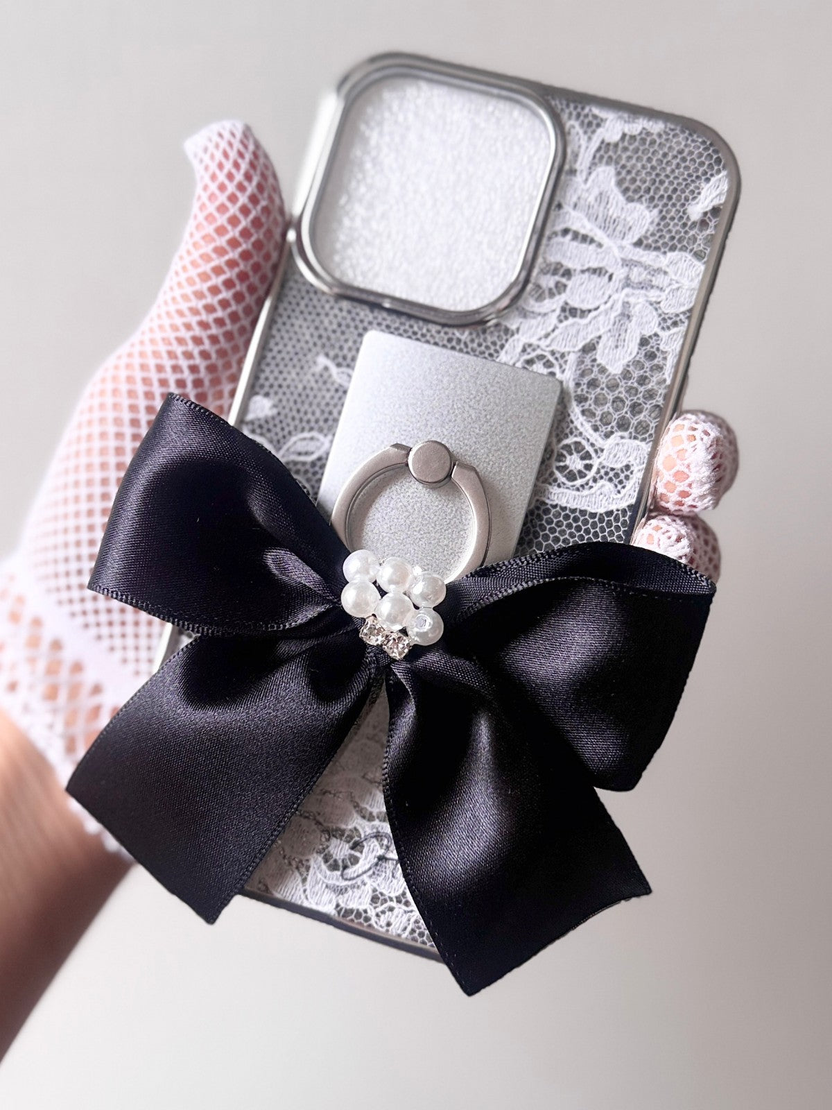 Hime. フランス製高級リバーレースハンドメイド×リングリボンオーダー iPhoneケース|ハンドメイドx大人可愛い(全機種Android対応)