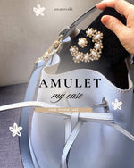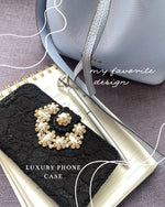 Hime. 大人可愛いスワロフスキーパールビジュー ハンドメイド手帳型オーダーiPhoneケース|イタリア製レース&上品ブラック(全機種対応)