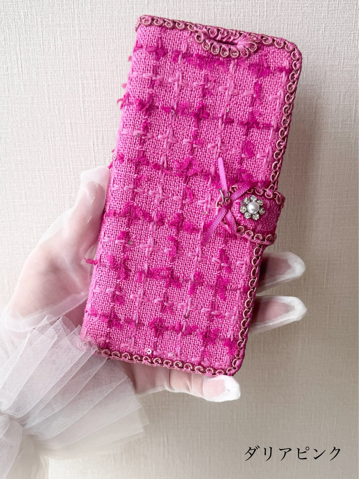 シャネルのスーツを纏うような気品をスマホケースにも。