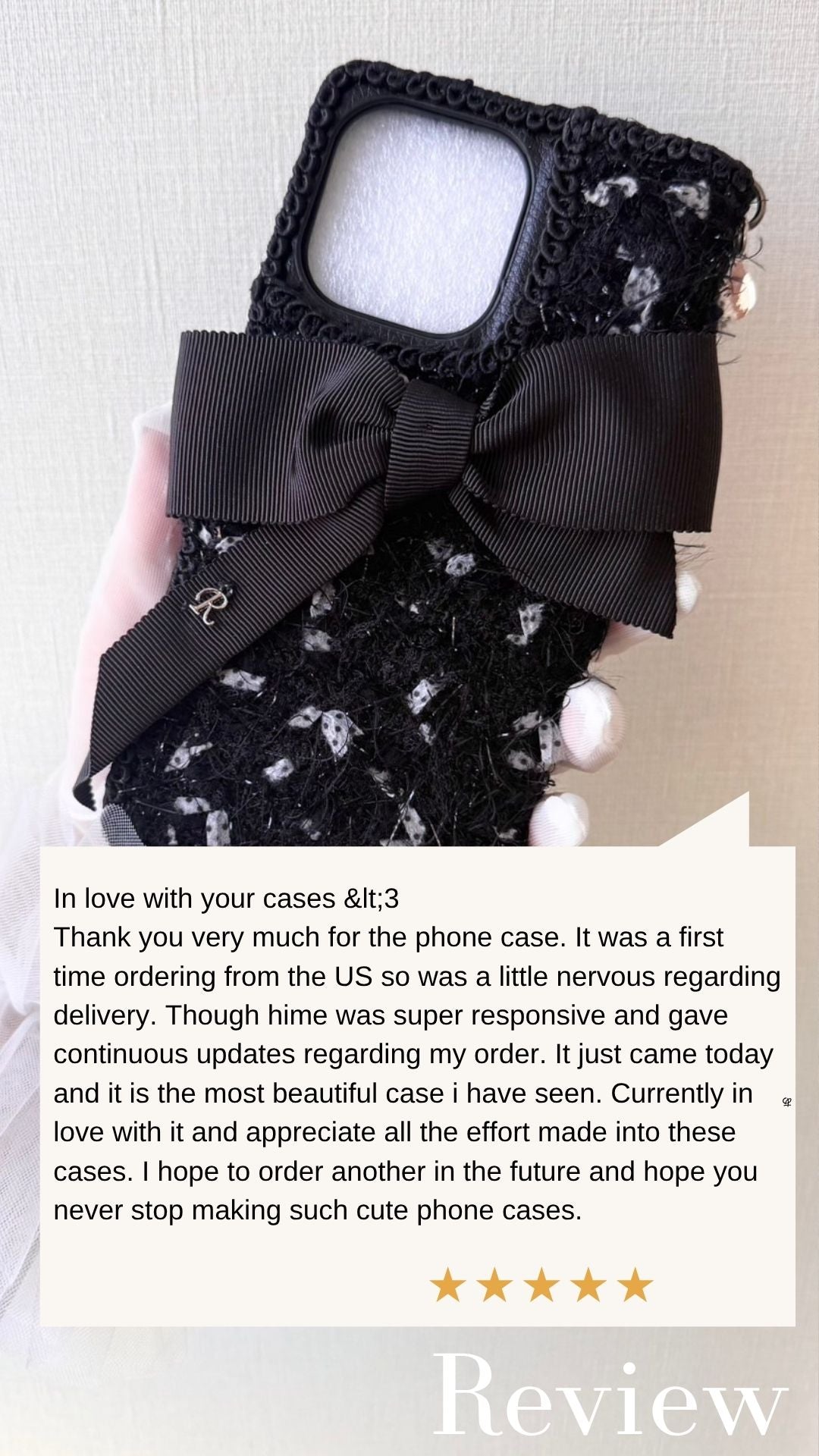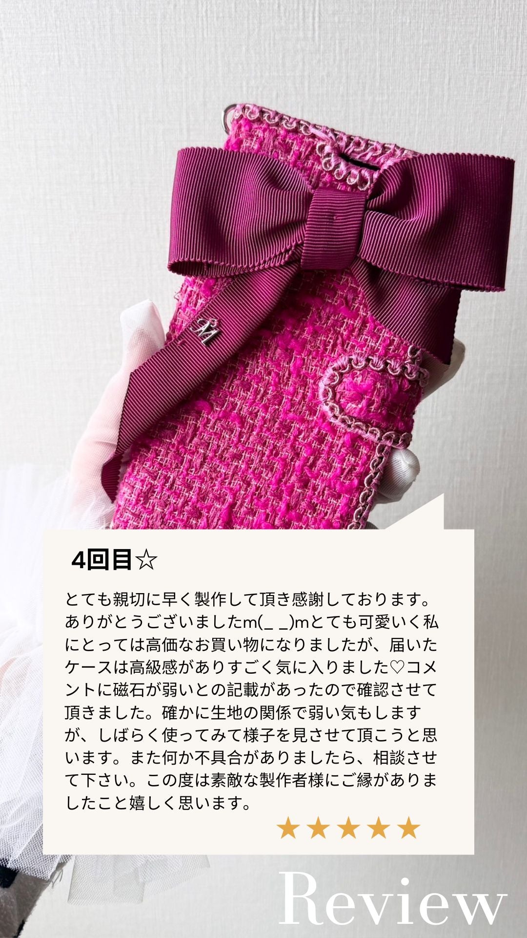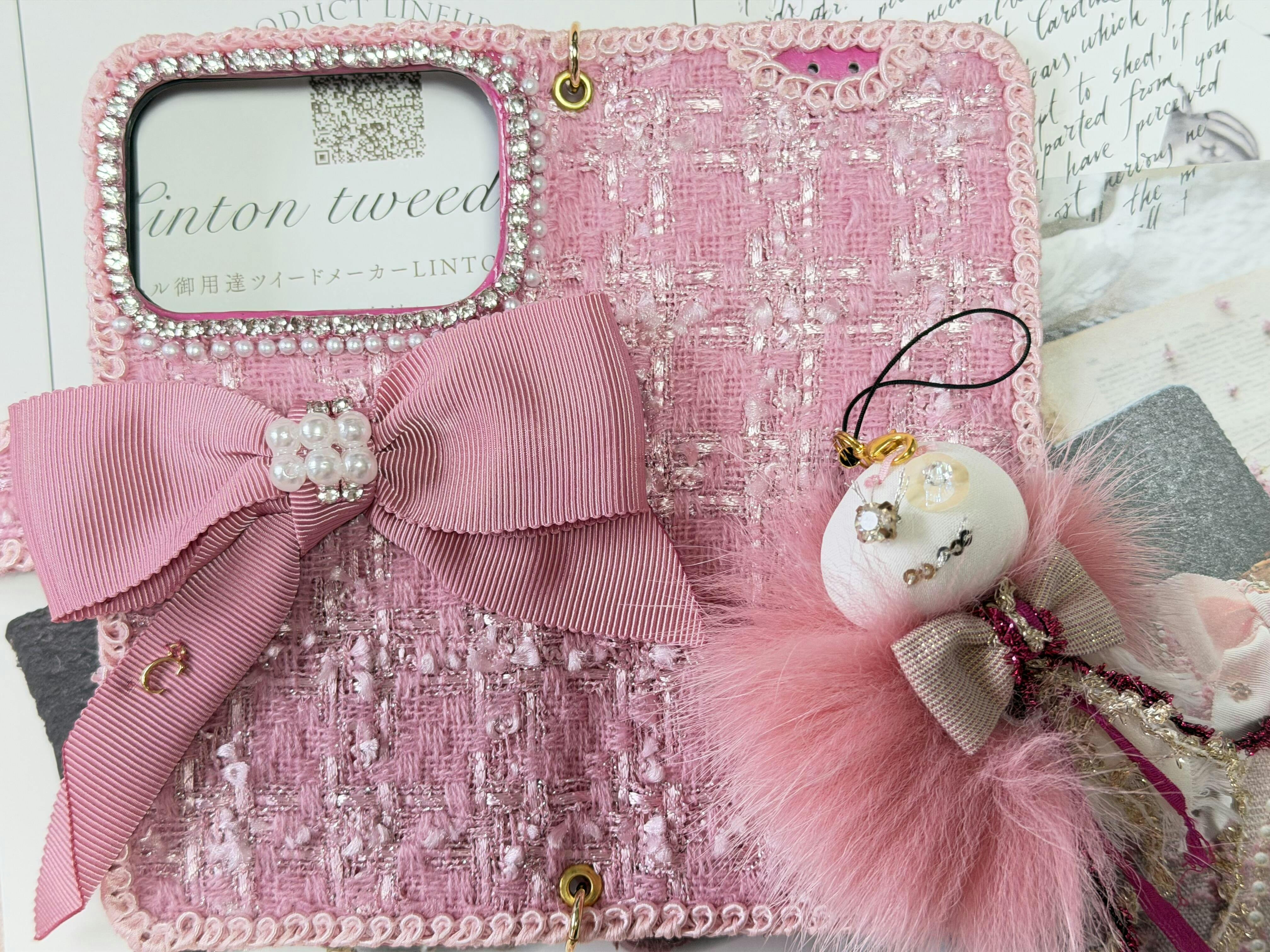 Hime. ヨーロッパ製メゾンツイード 手帳型オーダー iPhoneケース|リボン&イニシャル(全機種対応)