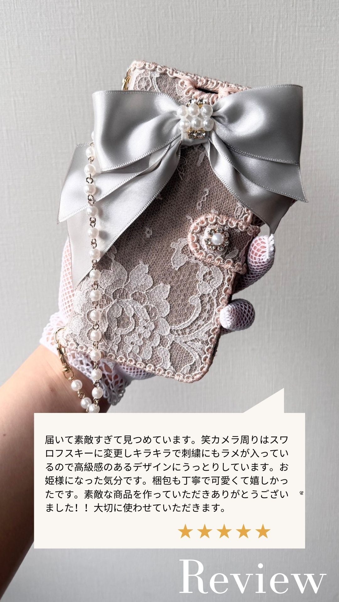 Hime. フランス製高級リバーレースハンドメイドリボン 手帳型オーダー iPhoneケース|パールチェーン付きx大人可愛い(全機種対応)
