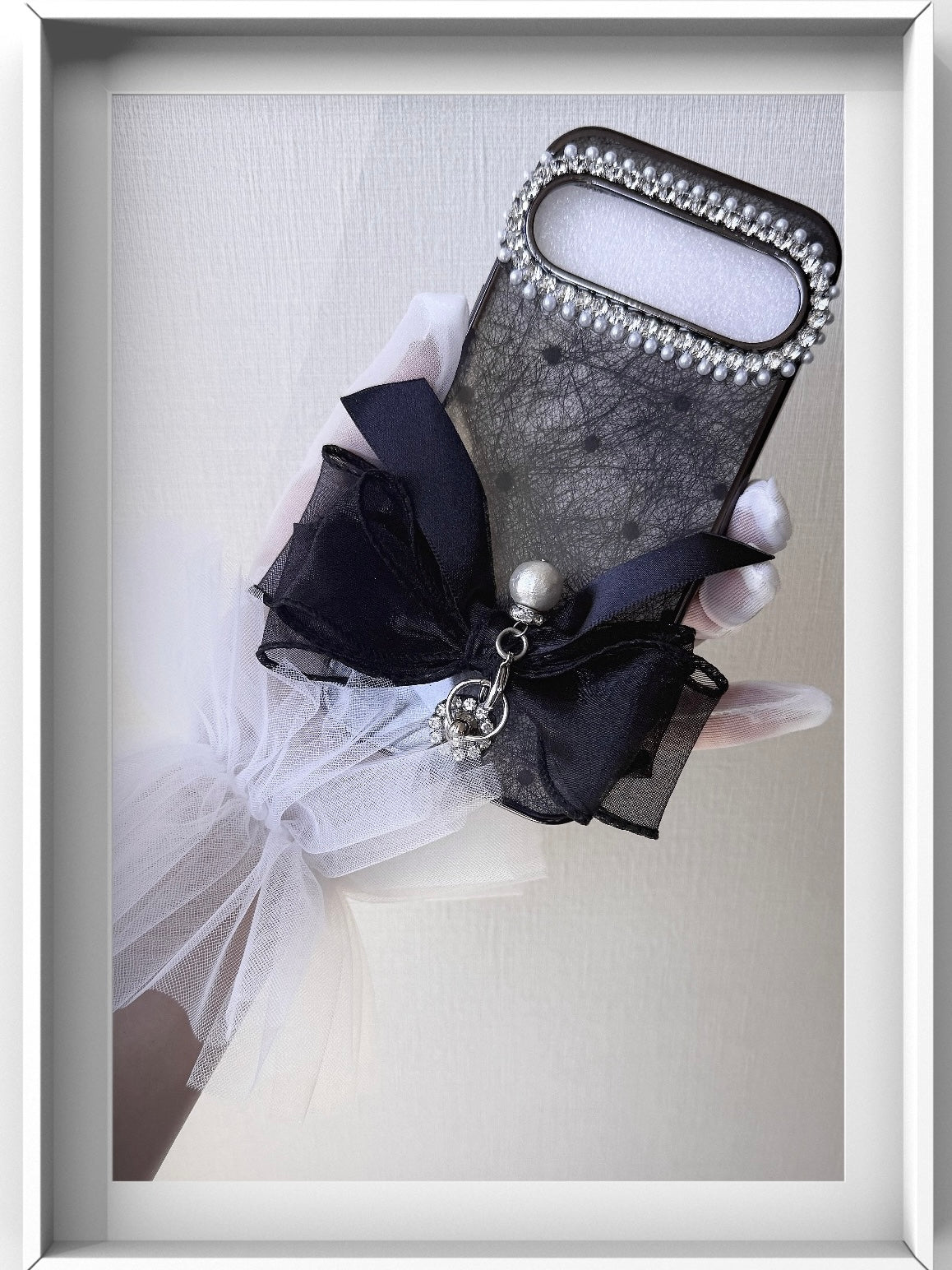 Hime. Classic French Girly Organza Frill Ribbon iPhone Case | Dot Lace & Soft Design (Compatible with All Models)
