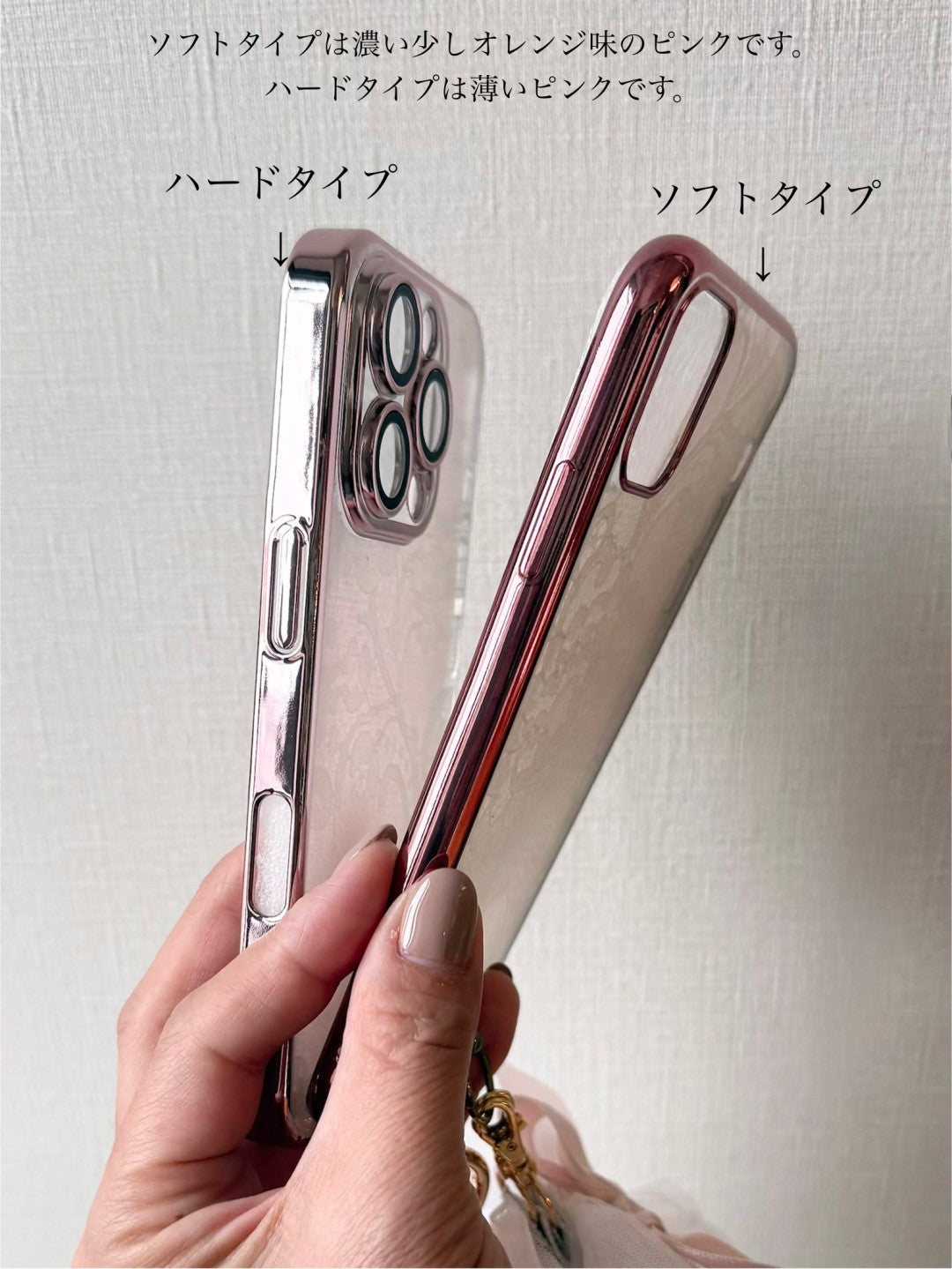 ピンクを選択の場合、カメラ周りデコのみピンク可能。オプションでお花ビジュー・両サイド穴開け等は全てゴールドで対応になります。オプションリボン中央パール横ストーンのみピンク金具可能