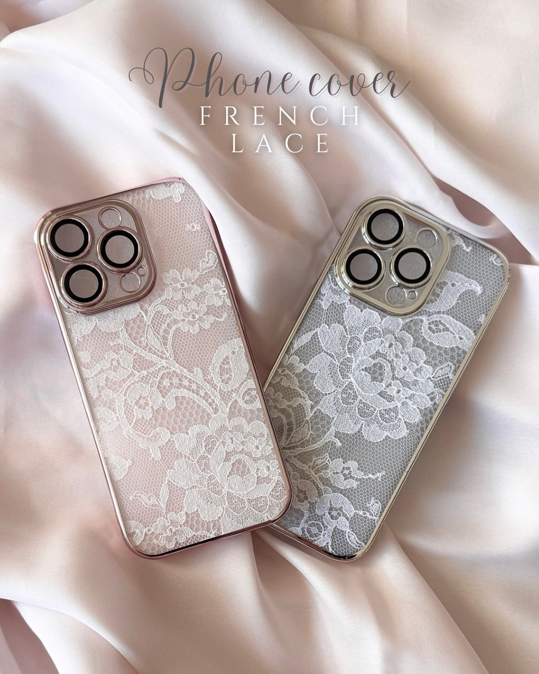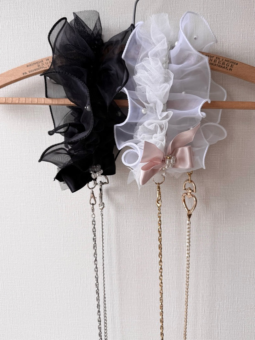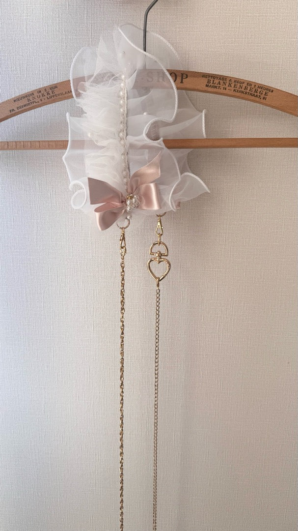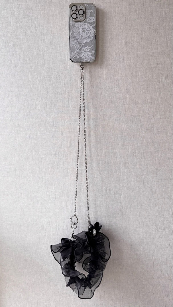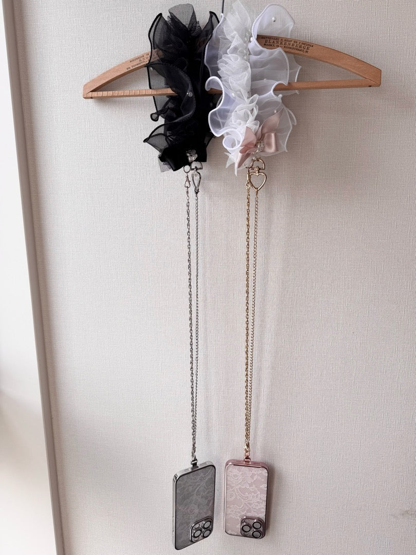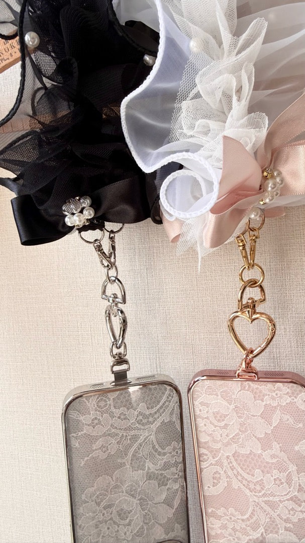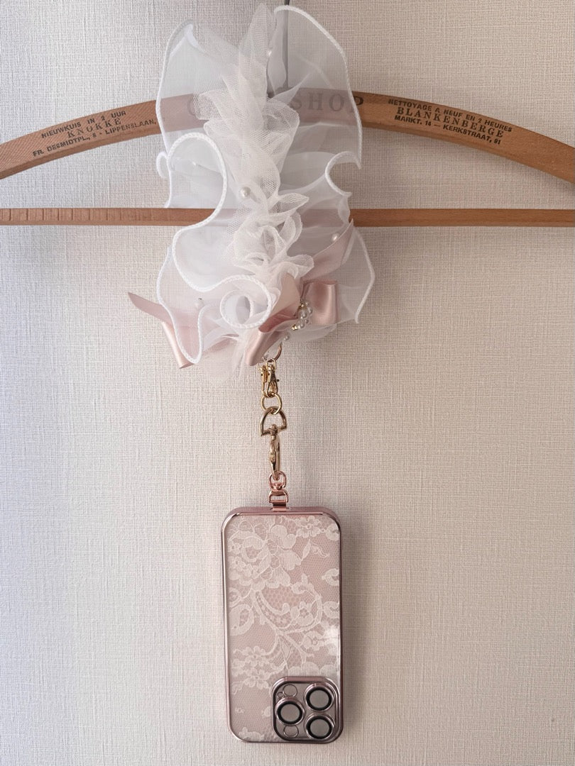 Hime. フリル&チュール肩がけチェーンストラップ付きフランス製レース スマホケース