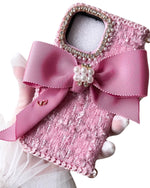 手帳型iPhoneケース・グログランリボンラインストーン・樹脂パール・樹脂