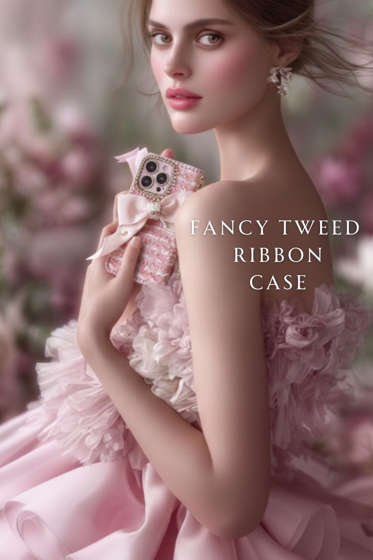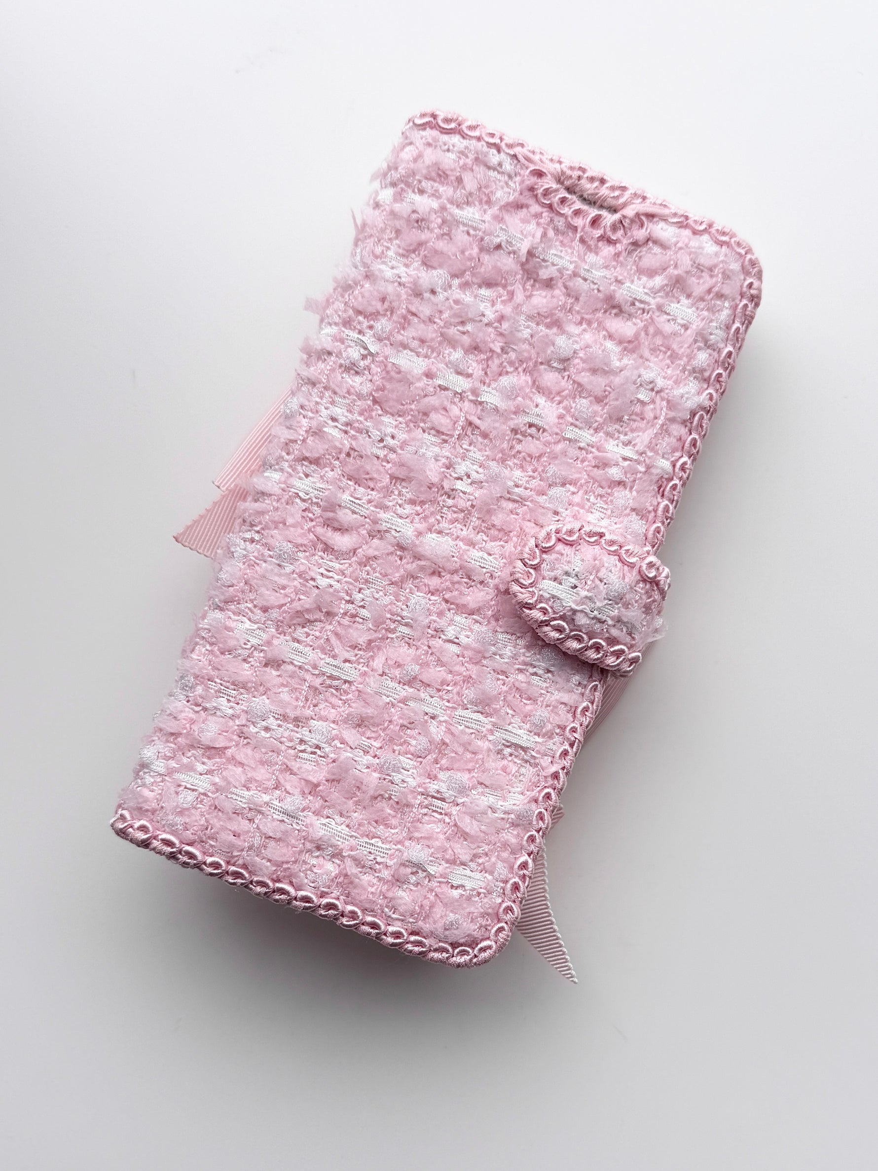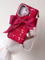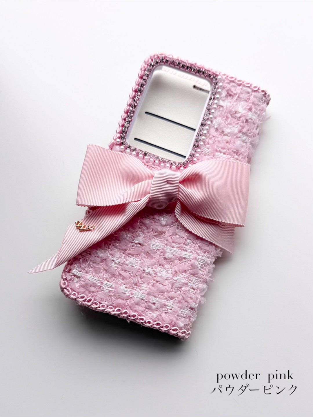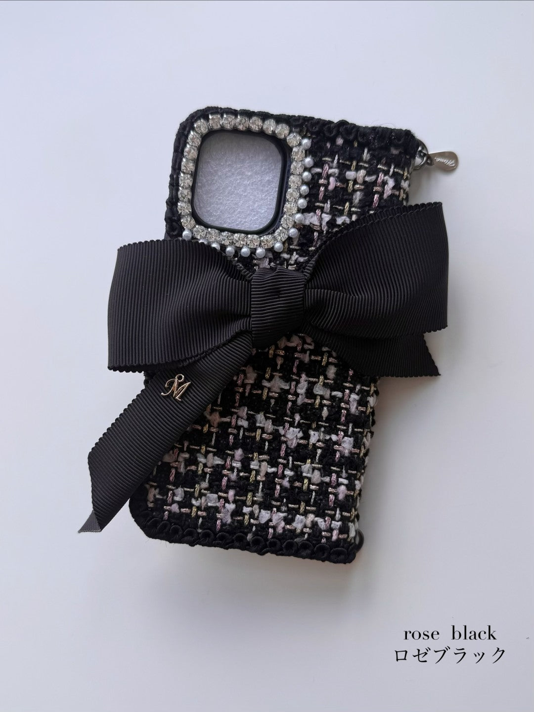 Hime. ハイブランドの世界観を纏うツイード 手帳型オーダー iPhoneケース|リボン&イニシャル×上品な大人デザイン(全機種対応)