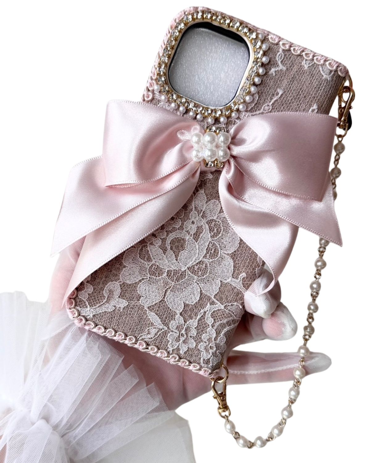 Hime. 大人のフレンチガーリー レースリボン 手帳型 iPhoneケース|パールチェーン付き(全機種対応)